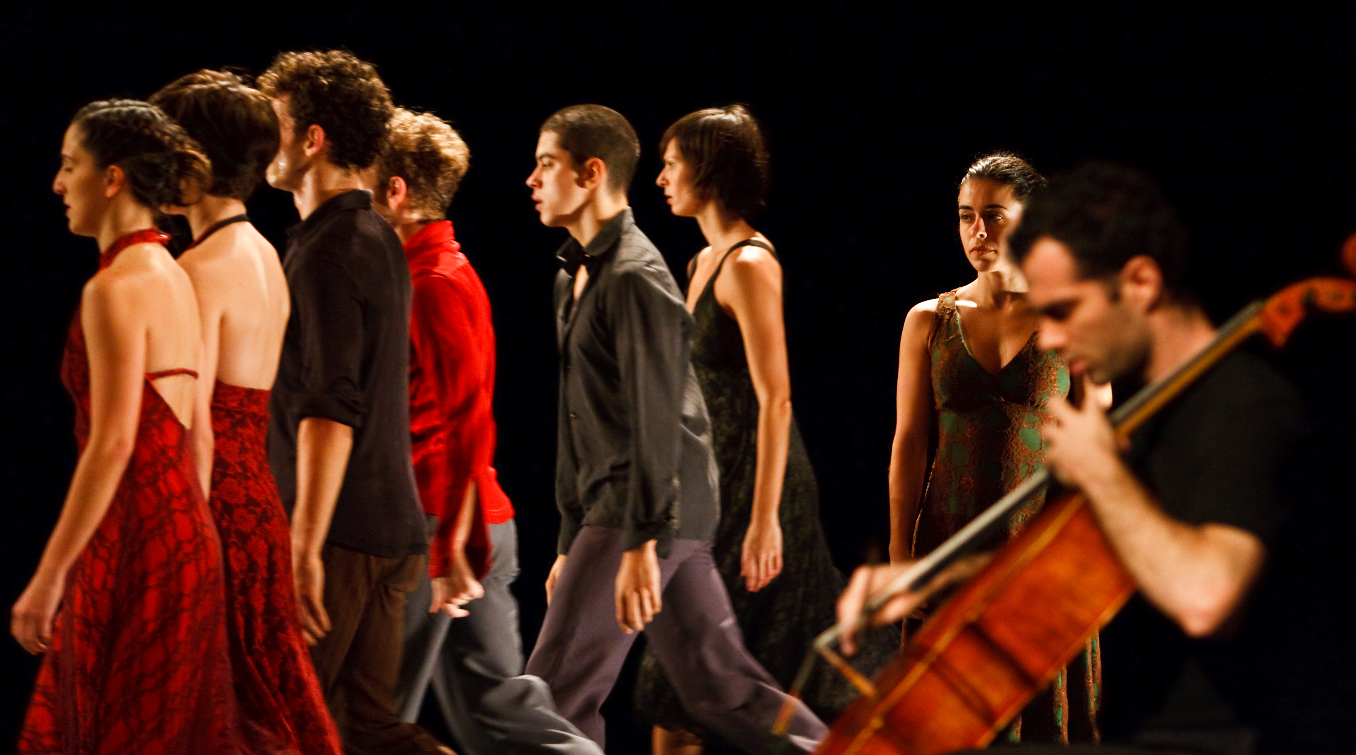 La sinuosidad de los movimientos circulares de los bailarines representa imágenes de enlaces y tejidos que se extienden en el espacio y enmarcan relaciones interpersonales. La pieza musical antigua transporta estos mismos movimientos al pasado en que J.S: Bach la compuso.